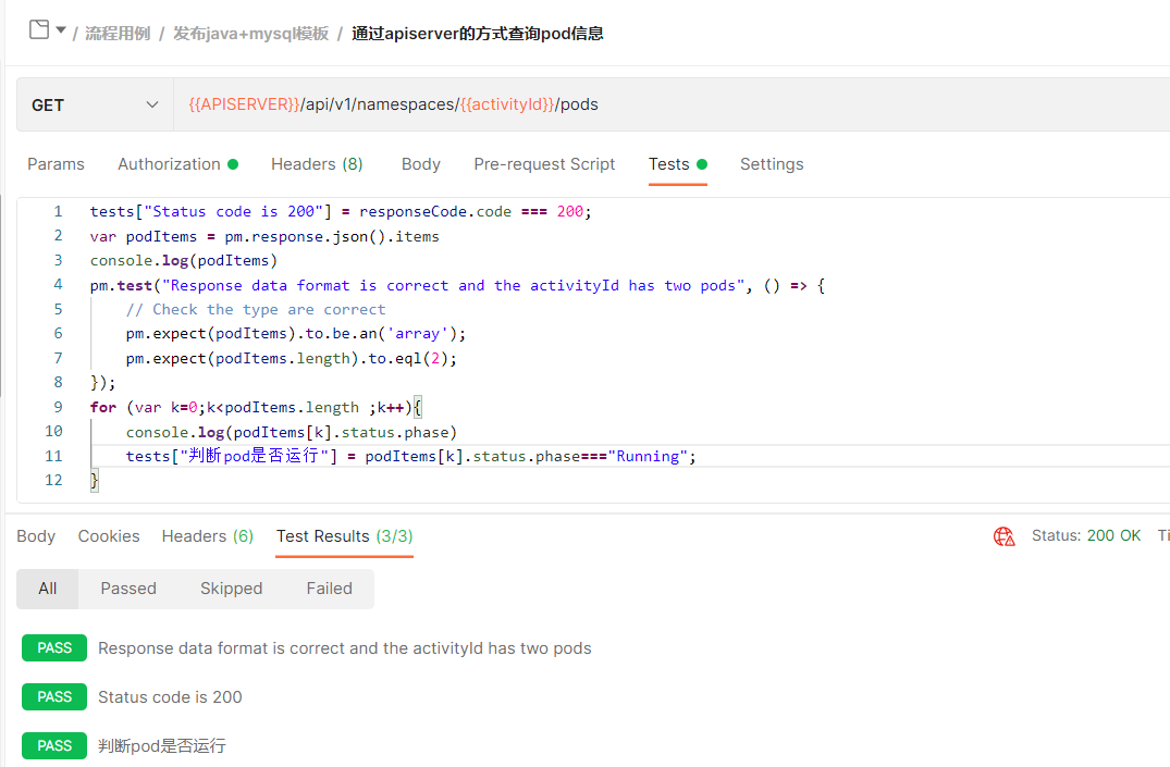 2、根据接口响应校验集群中实例包含的pod信息是否正确