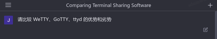 最近,ChatGPT 异常火爆,各行各业的人都在谈论 ChatGPT, 以上是个人对 WeTTY、GoTTY、ttyd 做的横向比较,那 ChatGPT 是怎么看的?请看我在 TitanIDE 和 ChatGPT 的对话: