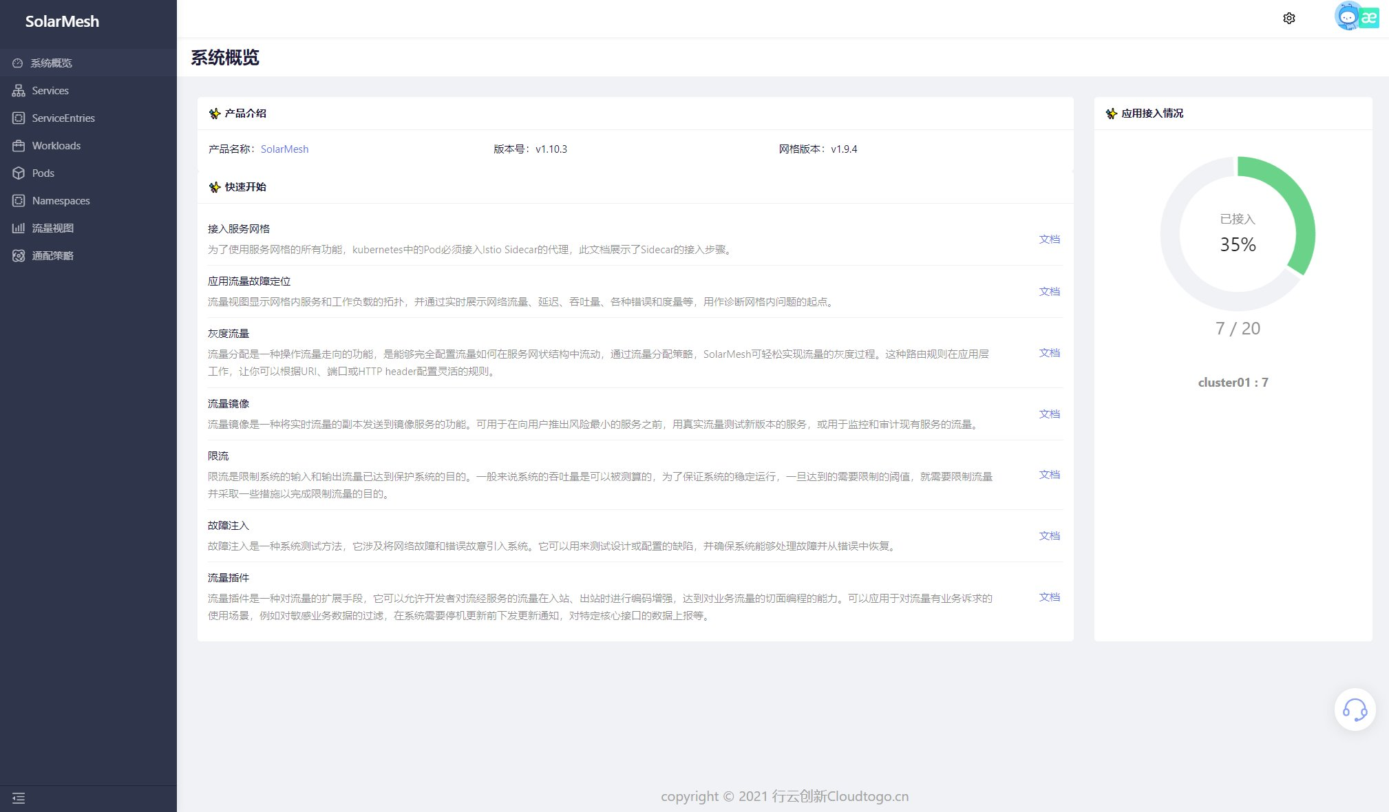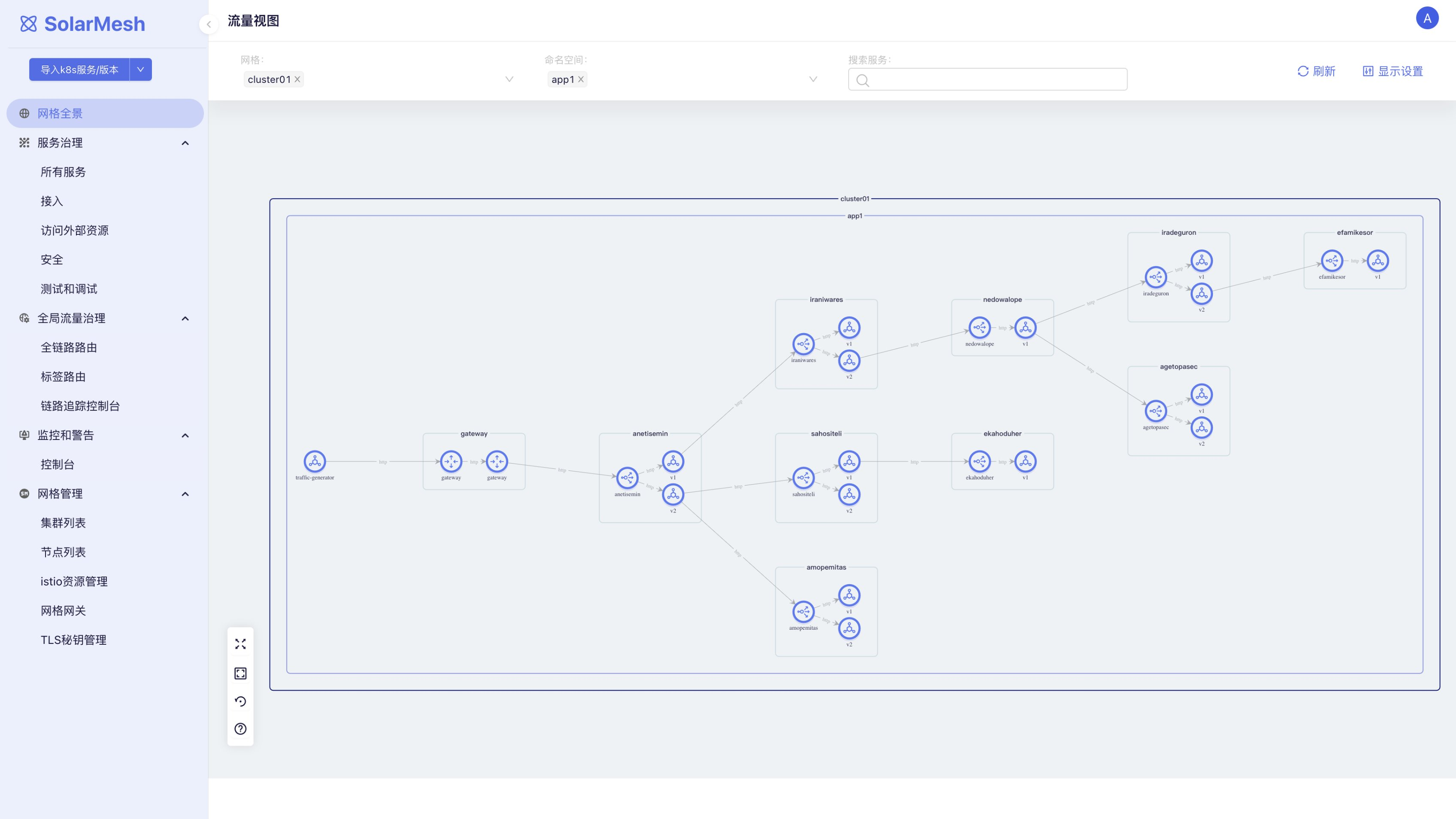 SolarMesh是星空游戏创新推出的流量治理平台,它基于Istio,为部署在K8s集群上的应用提供全面的流量治理能力。